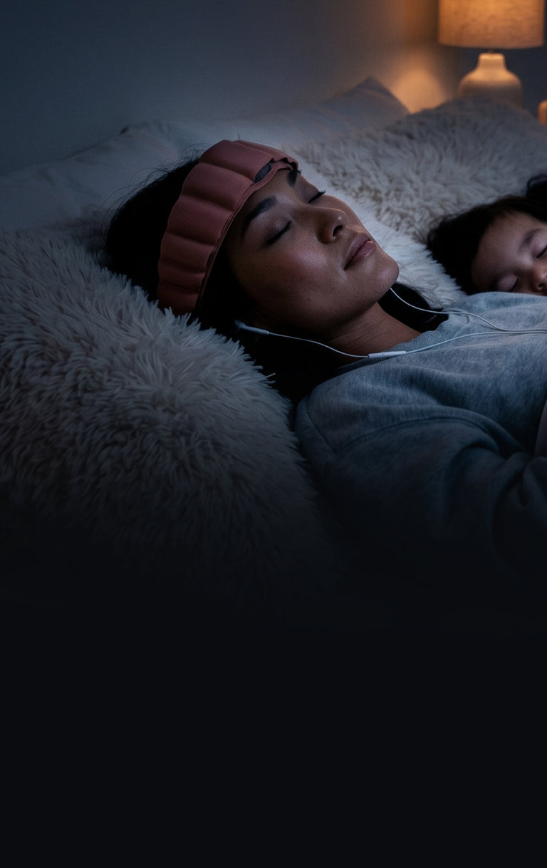 Our 15-minute neurostimulation helps you sleep through the night with less tossing and turning. If you do wake up? Just slip on Somnee and hold the headband button 3 seconds to launch DriftBack for an easy sleep reset — no phone needed.